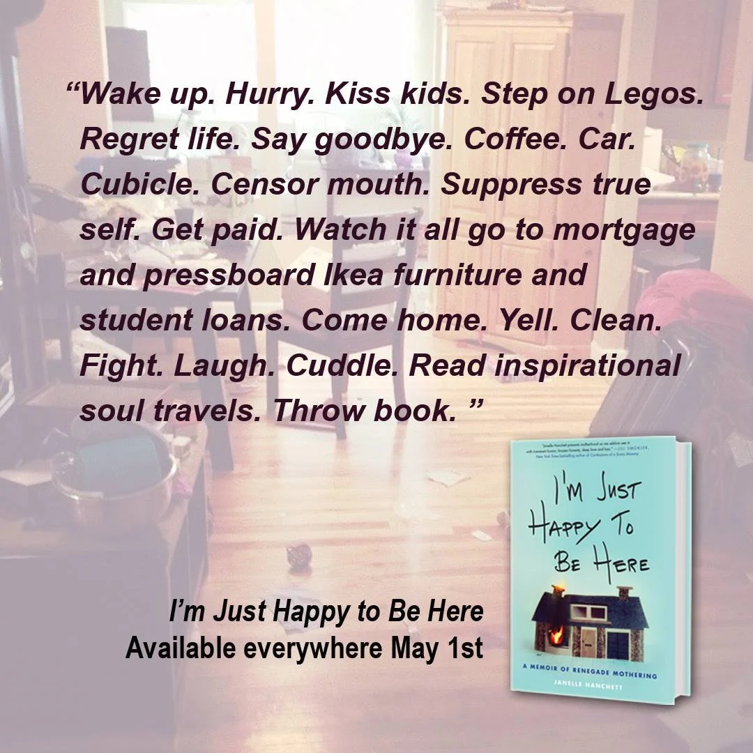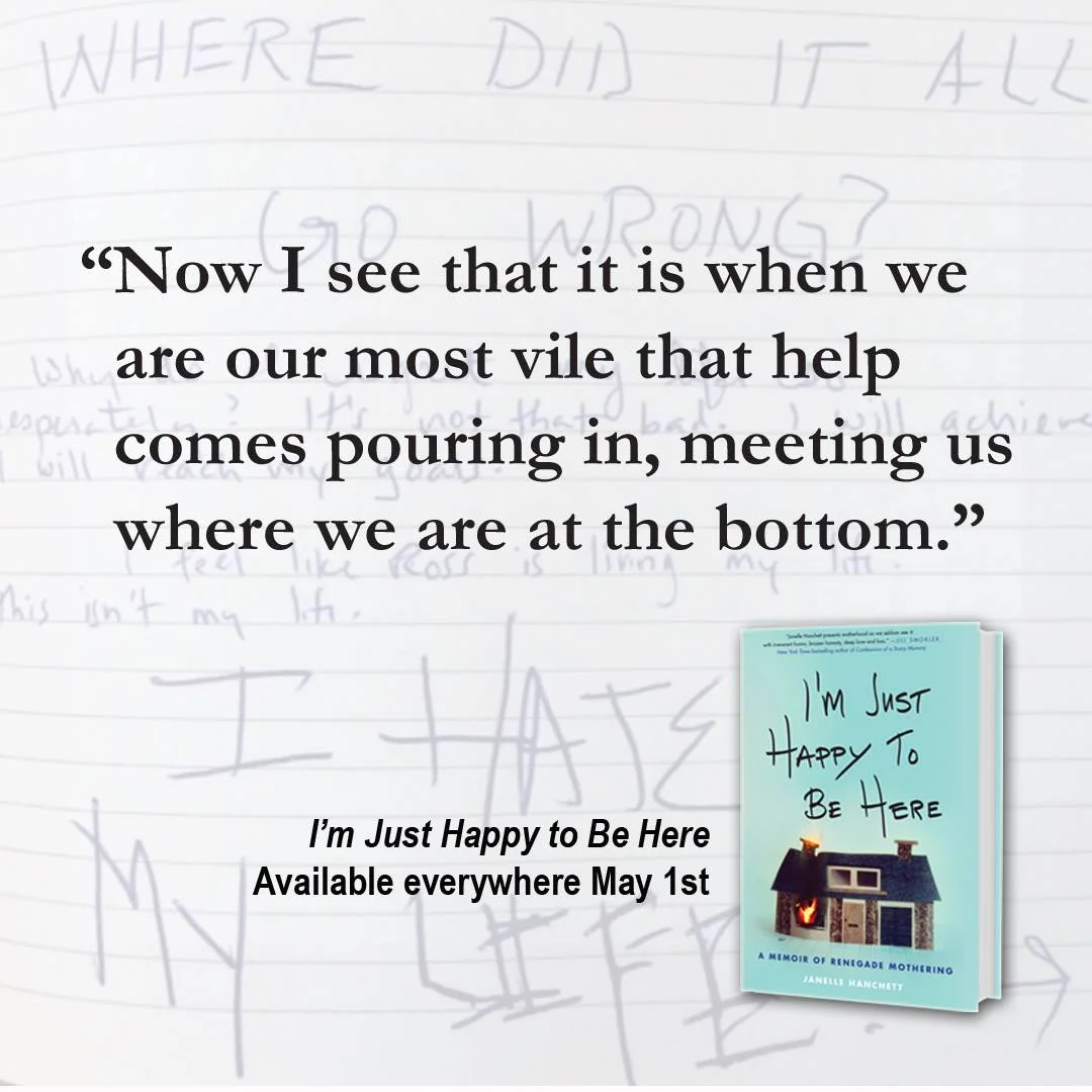 I am talking about Janelle Hanchett's new memoir of mothering and addiction, I'm Just Happy to Be Here, available for pre-order NOW and being released on May 1, 2018.